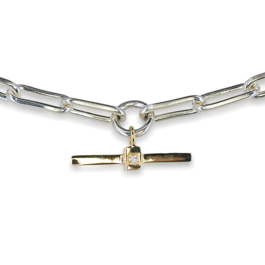Silver & 9ct Gold Diamond T-bar